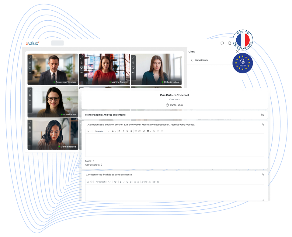 La plateforme de proctoring Evaluo est développée en interne. Nous ne dépendons d’aucune solution tierce pour la surveillance des examens.